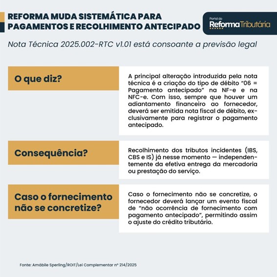 A Nota Técnica 2025.002-RTC v1.01 está consoante a previsão legal para fins de implementação da Reforma Tributária.