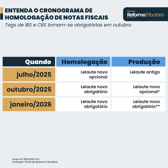 A partir de 1º de outubro, toda empresa que realizar testes no ambiente de homologação deverá, obrigatoriamente, utilizar as novas tags previstas pela reforma, com adequações de IBS e CBS, afirma Vinicius Zucchini, CPO na ROIT. Embora a obrigatoriedade se inicie em outubro, a fase de testes já começou, de forma facultativa, em julho.