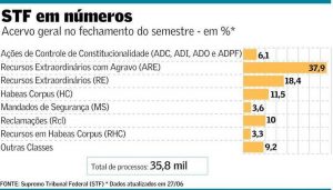 Essa etapa não discute mérito. Trata somente sobre a admissibilidade do recurso – se será ou não julgado pelos ministros do STF. Os dados mostraram que mais de 99% das decisões eram por manter o que já havia sido decidido na instância inferior.